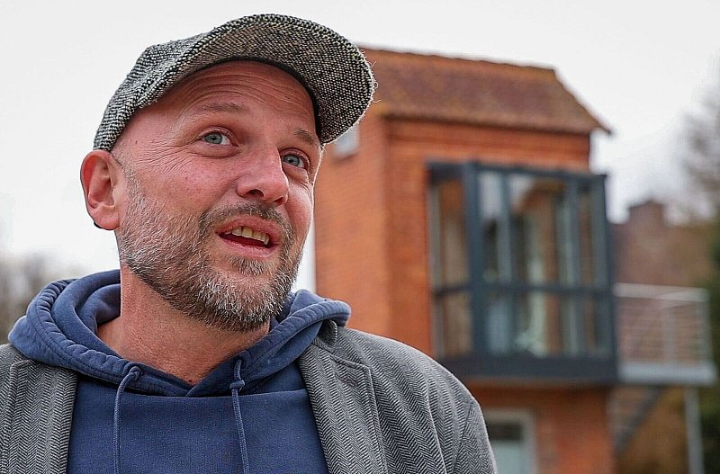 2020 hatte er zusammen mit seiner Frau Marita Hannemann-Moos den 17 Meter hohen Turm gekauft, der in seiner Grundfläche kaum mehr als zwei mal zwei Meter misst. Für einen Euro, zuzüglich 19 Cent Mehrwertsteuer, wie er sich erinnert. Plus 50 Euro für das 22 Quadratmeter große Grundstück.