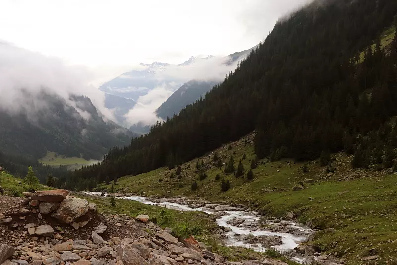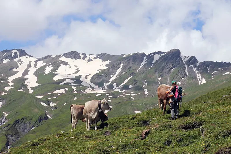 An diesem eher grauen Vormittag ist niemand sonst unterwegs, lediglich unterhalb der Baumgrenze überquert ein Luchs spielend leicht den Wasserfall: «Das ist einmalig», flüstert Marianne. Nur äußerst selten bekommen Wanderer die Wildkatze zu Gesicht. Die Hochebene in den Alpen ist Wildnis. Steinbock, Murmeltier und Gams sind hier die «Hüttentiere».