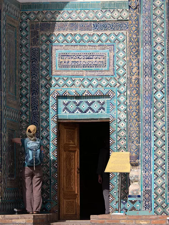 Hier fühlt man sich vom Orient wie betäubt. Jedes Portal öffnet sich als Tor ins Paradies. Kuppeln und Kachelbilder überwältigen in Blau und Türkis, mit Blumen- und Sternendekors, Inschriften, geometrischen Symmetrien.