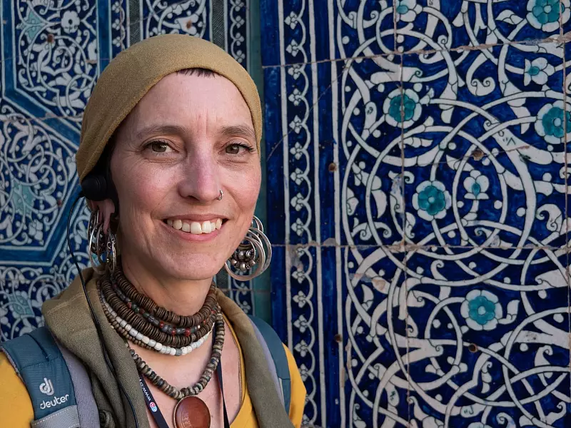 In den Sturzfluten aus bunt glasierten Kacheln, die Minarette und Wände überziehen, fühlt sich Keramikerin Fränzi Iff aus der Schweiz in ihrem Element. Die 46-Jährige, eine der Jüngeren auf der Reise, begeistert sich an Schnörkelranken und den Größen der Kompositionen.