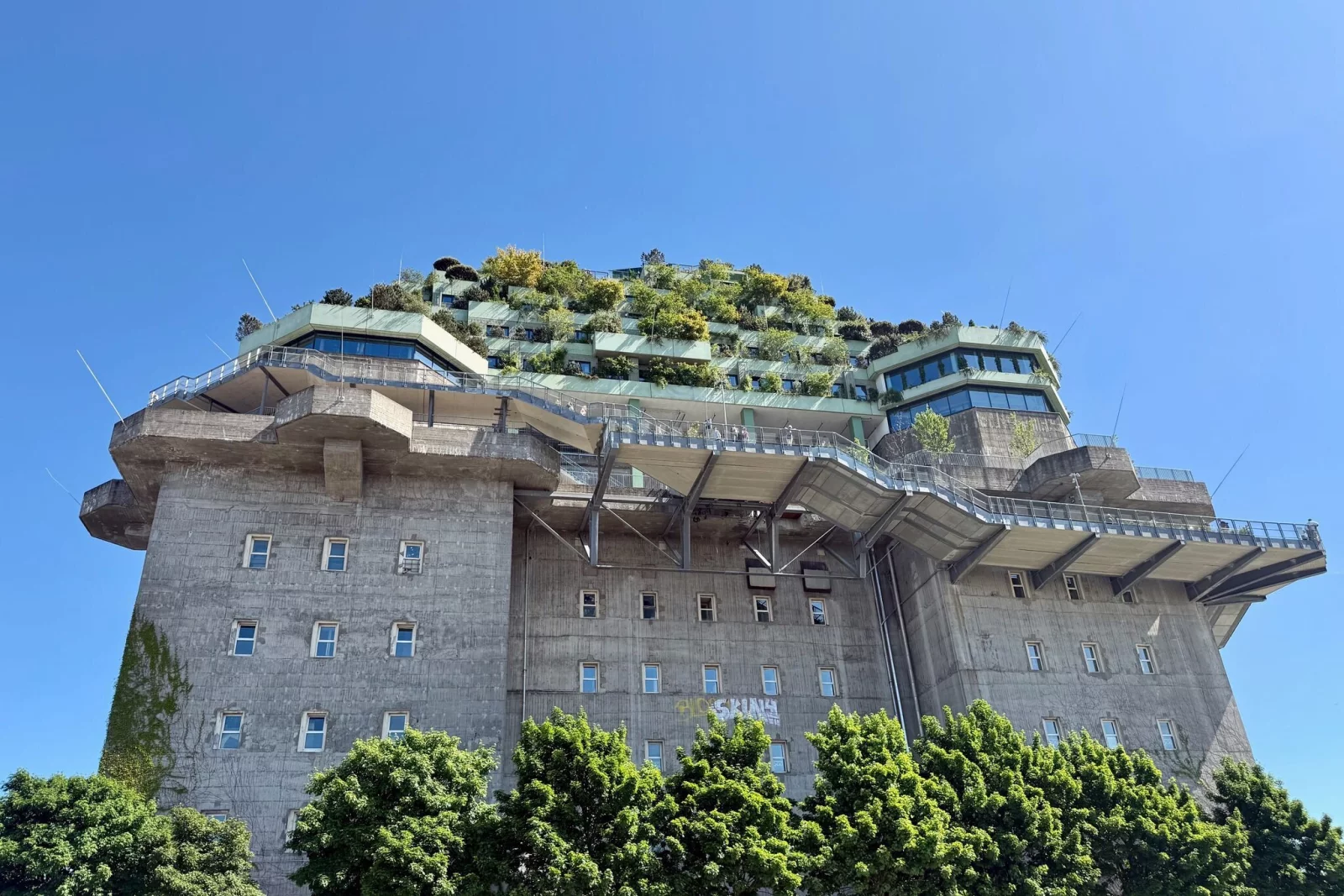 Der Bunker ist nun unten grau und oben grün: Auf den fünf neuen Stockwerken wurden Tausende von Stauden, Büschen und Bäumen angepflanzt. «Das Ding ist nur entstanden, weil wir einen Garten haben wollten», sagt Miriam Wiese vom Verein Hilldegarden. Wiese lebt im benachbarten Karoviertel und führt Gruppen auf den Bunker, der zu einem neuen Wahrzeichen Hamburgs geworden ist.