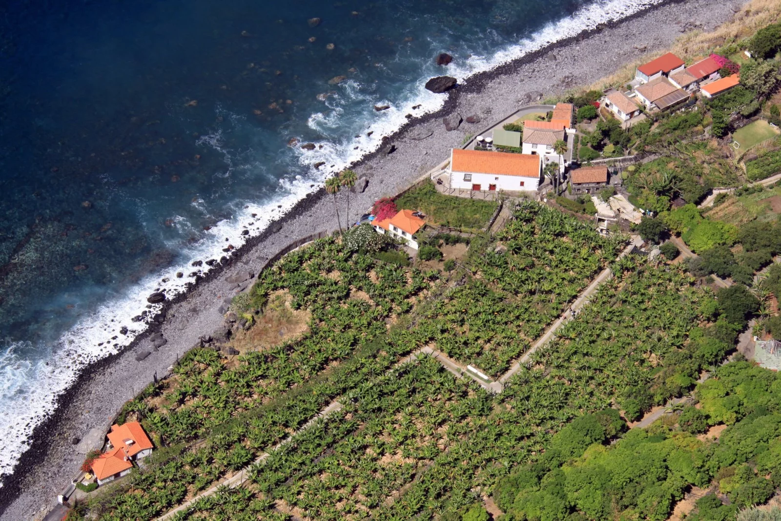 Die weiß getünchten Steinhäuser des Guts befinden sich am Strand und sind umgeben von tropischen Früchten. Hier im Süden der portugiesischen Atlantikinsel vor der Küste Westafrikas gedeihen im subtropischen Klima viele Pflanzen, was Madeira den Spitznamen Blumeninsel einbrachte. Es gedeihen Bananen, Papayas, Mangos, Guaven, Avocados, Passionsfrüchte – und natürlich Weintrauben.