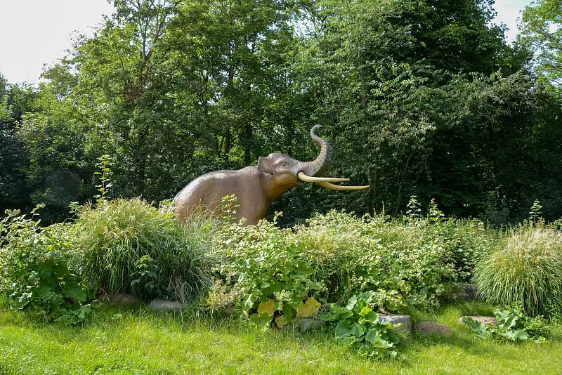 Wer bei der Gaststätte «Elmhaus» zu einer Wanderung startet, kann sich über die vier Meter hohe Skulptur eines Waldelefanten wundern. Und im größten Supermarkt Schöningens regeln Ampeln mit Piktogrammen von Steinzeitmenschen den Kassenverkehr.