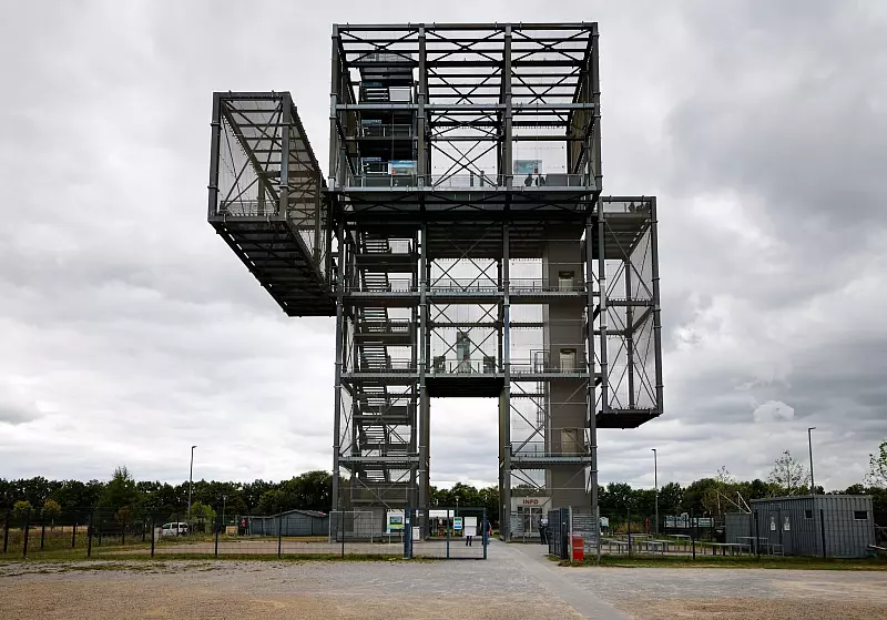 Ausflügler können den Aussichtsturm im thüringischen Ellrich aber besteigen. Von oben soll der Blick bei gutem Wetter auch bis zum Brocken reichen - der ist nur 25 Kilometer Luftlinie entfernt. Hat man sich sattgesehen, muss man nicht die Treppen nehmen. Es führen zwei Rutschen hinab.