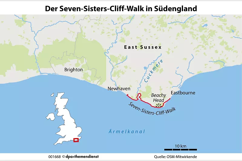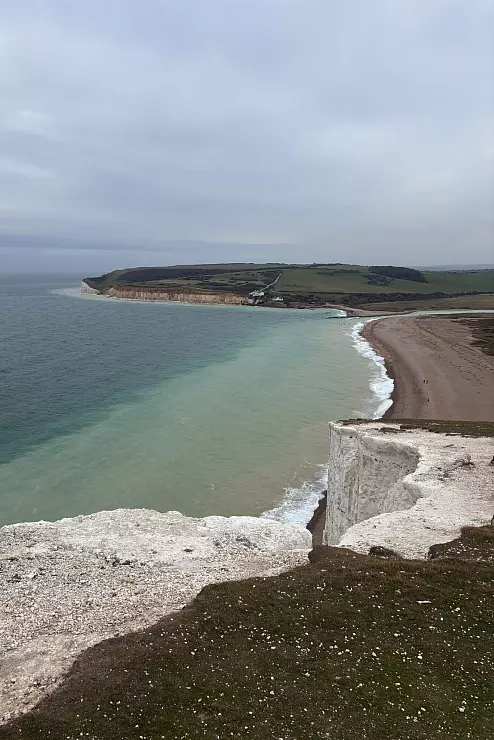 Wissenswertes: Die sieben Schwestern heißen von Cuckmere aus gesehen Haven Brow, Short Brow, Rough Brow, Brass Point, Flagstaff Point, Flat Hill, Baily’s Hill und Went Hill Brow. Beachy Head ist mit seinen 162 Metern als höchster Kreidefelsen Großbritanniens bekannt (zum Vergleich: Der Königsstuhl auf Rügen ist 118 Meter hoch), gehört aber nicht zur Reihe. Die Felsen gehören zum Nationalpark South Downs.