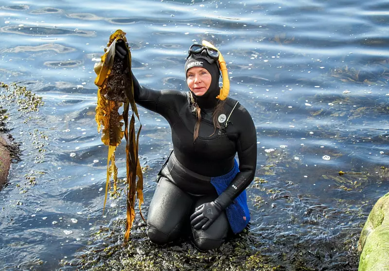 «Das Wasser ist kalt, aber voller Leben», sagt Linnea mit einem Lächeln - und verschwindet unbeirrt ins kalte Nass. Wenig später taucht sie wieder auf, ein glänzendes Bündel in der Hand: frisch geerntete Algen in Braun, Rot und Grün.