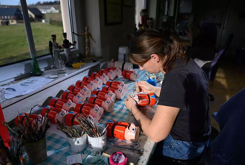 Seit dem 17. Jahrhundert wird in der Werkstatt der Familie Füchtner in Seiffen Holzkunst gefertigt. Sie ist das Geburtshaus des erzgebirgischen Nussknackers. - © Hendrik Schmidt/dpa