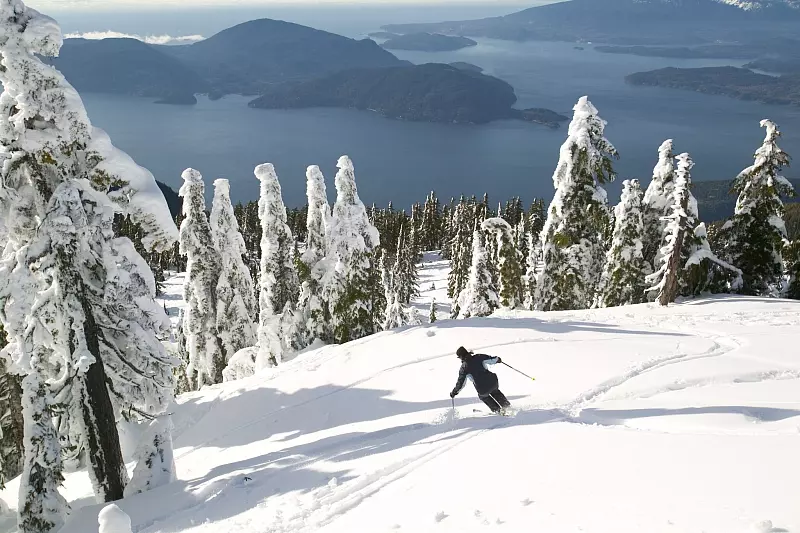 Nicht selten vermeldet man dort die stärksten Schneefälle des Landes. Spielt das Wetter mit, reicht der Blick vom Skigebiet über die Strait of Georgia bis zu den schneebedeckten Gipfeln der Coast Mountains.