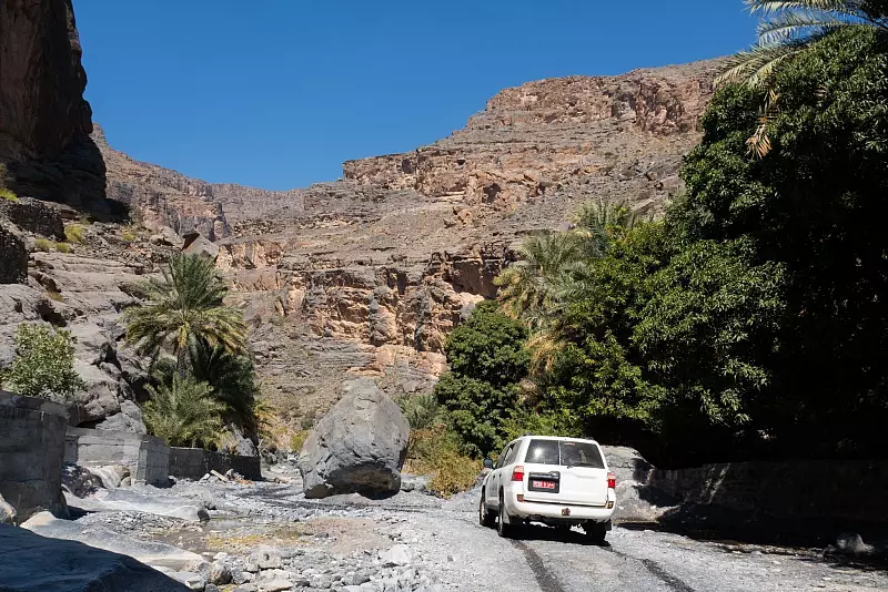 Etwa 60 Wadis verzeichnet das Sultanat. Im Nord- und Ostteil basteln sich Selbstfahrer ab Maskat ein Wadi-Hüpfen zu den attraktivsten Trockentälern als etwa 1.000 Kilometer lange Route zusammen; Alternative ist eine organisierte Tour mit Guide. So oder so braucht man ein geländegängiges Fahrzeug.