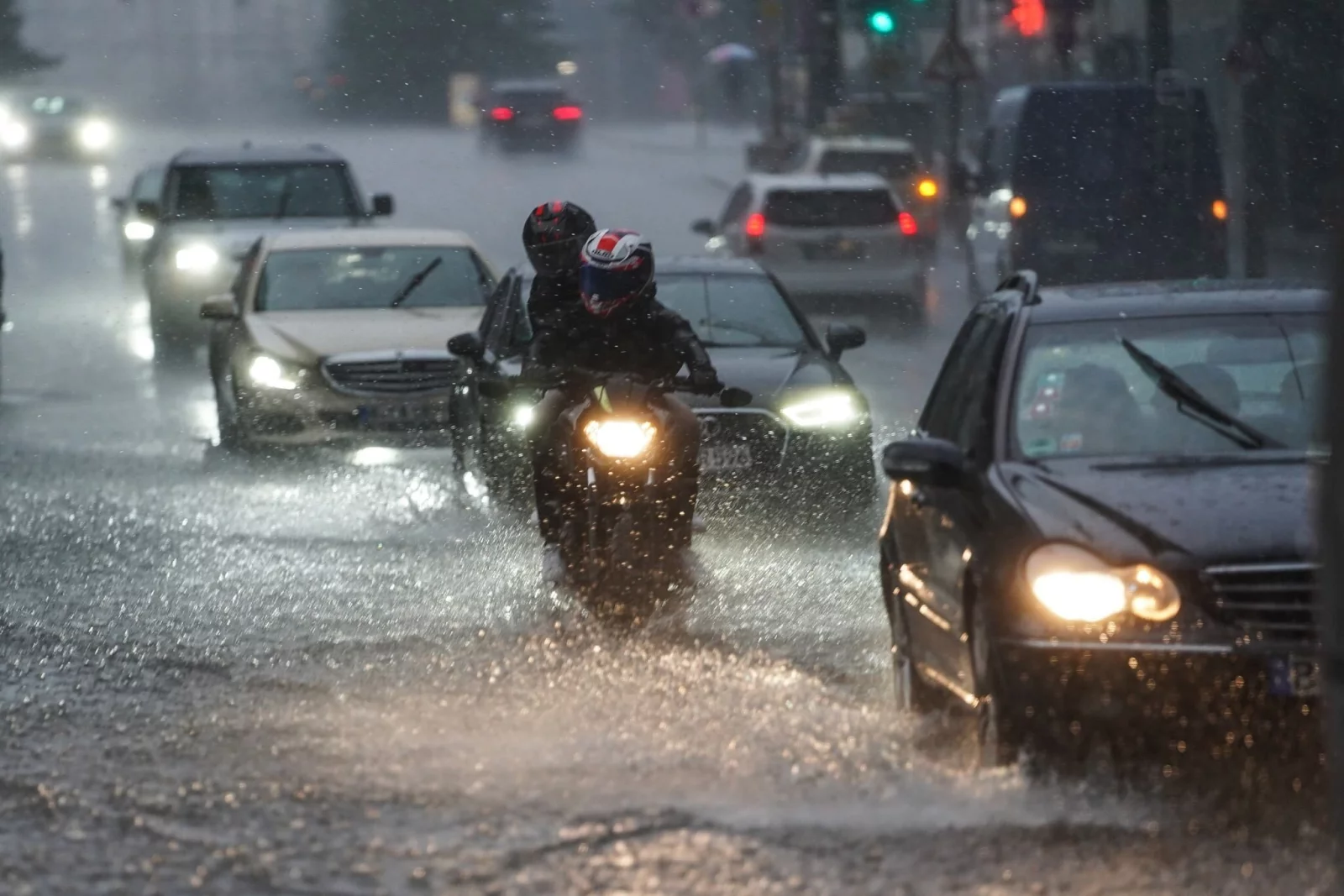 Sobald das Wasser in den Radkästen prasselt und wenn Fontänen nach außen spritzen, wird es kritisch. Ab einer Wassertiefe von rund 20 Zentimetern Wassertiefe droht ein Kontrollverlust über den Wagen, so die GTÜ. Und bei 30 Zentimetern könne ein Fahrzeug regelrecht aufschwimmen.