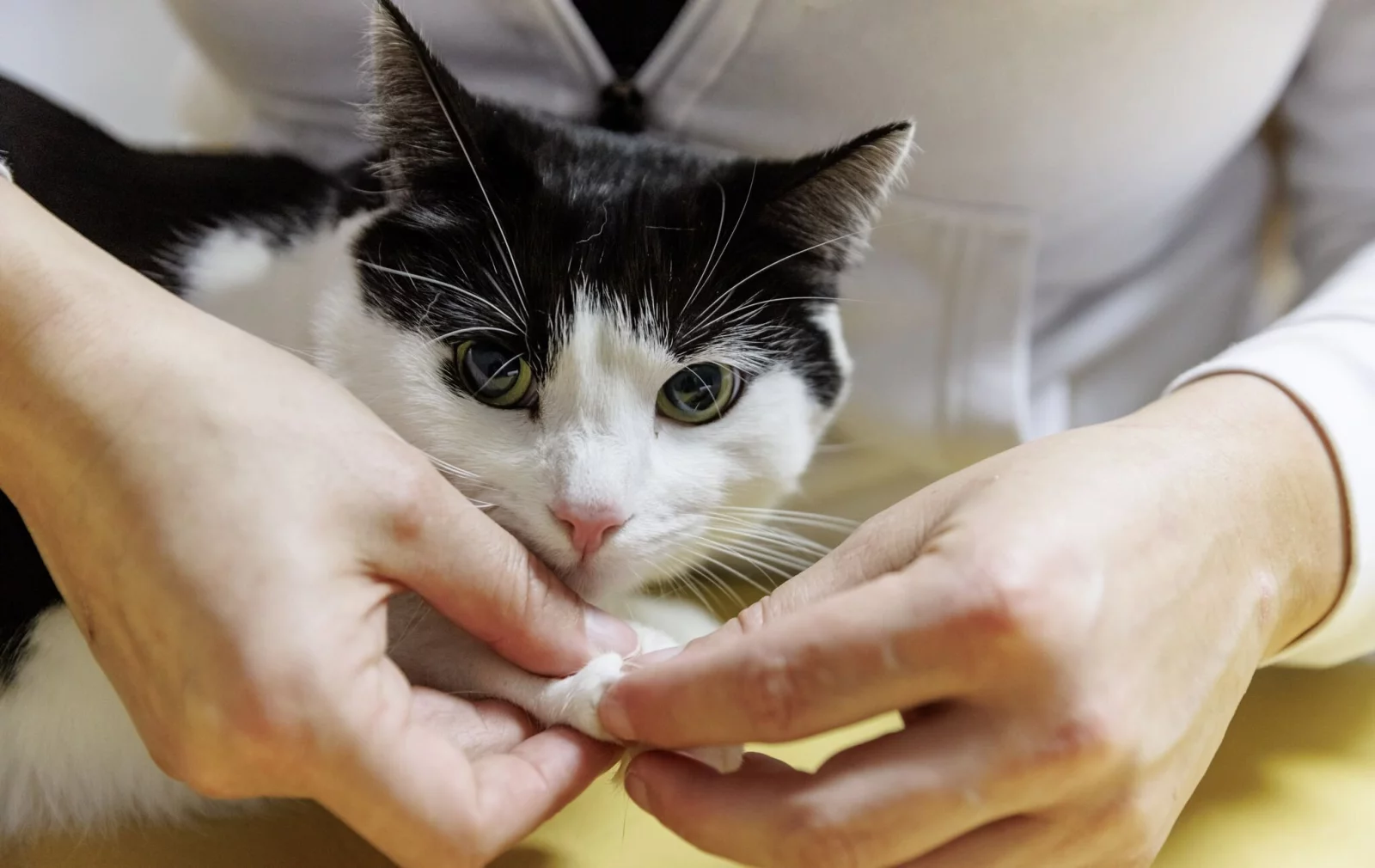 So kann es etwa vorkommen, dass der Patient vor Schmerz zubeißt. Das kann man unterbinden, indem man dem Hund kurz die Schnauze zubindet, die Katze wickelt man in einen Pulli oder ein Tuch.