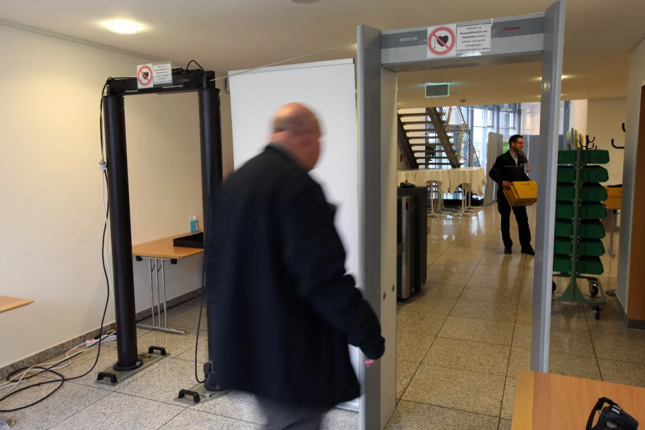 Der logistische Aufwand ist groß: Neben den Dolmetscherkabinen werden auch zwei Sicherheitsschranken für die Prozesstage installiert und anschließend wieder abgebaut. Ebenso die blickdichten, lichtdurchlässigen Lamellen – eine spezielle Konstruktion, damit niemand von außen in den Saal fotografiert.
