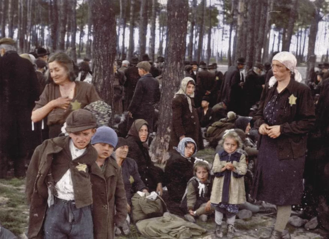 Irene Weiss ist im Mai 1944 selbst erst 13 Jahre, als sie mit ihrer Familie von Ungarn nach Auschwitz deportiert wird. Zum Auftakt des vierten Prozesstages werden Bilder eines unbekannten NS-Fotografen aus Auschwitz an die Wand des Saals projiziert – darunter ein Bild, das Irenes Angehörige zeigt. Sie tragen gelbe Davidsterne an der Kleidung, warten, scheinen arglos zu sein. Denn sie wissen nicht, dass sie gleich in die Gaskammer geführt werden. Das Bild macht so betroffen, weil es nicht nur ein Zeugnis der furchtbaren Zeitgeschichte ist, sondern die Menschen darauf einen Namen haben: Die beiden jüngeren Brüder von Irene Weiss, Reuven (9) und Gershon (7), stehen links im Vordergrund, die Mutter Leah (44) sitzt dahinter auf dem Boden. Wenig später sind sie alle tot. Irene Weiss hat bis auf ihre drei Jahre ältere Schwester Serena alle engen Angehörigen in Auschwitz verloren.
