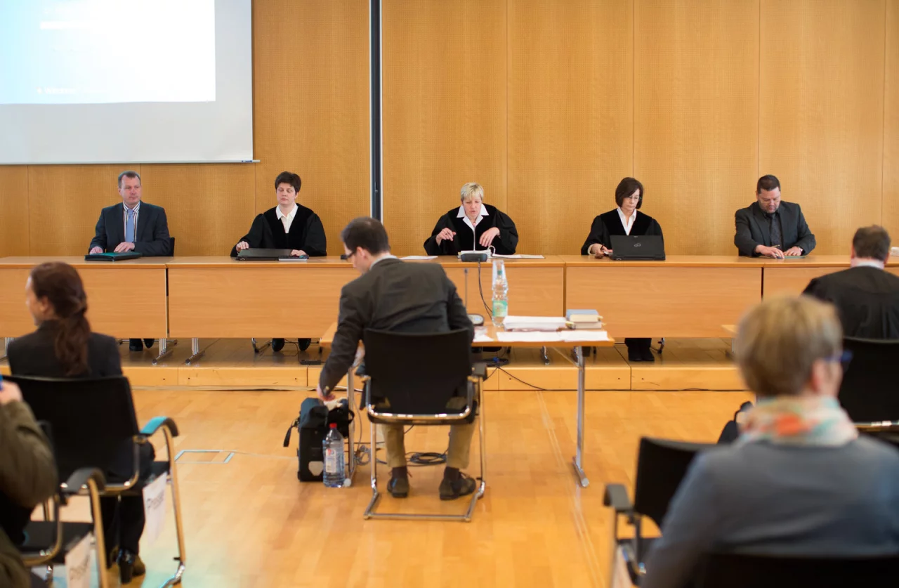 Im Gerichtssaal ist es mucksmäuschenstill, der Angeklagte Reinhold Hanning blickt zum Richtertisch, dann wieder nach unten, nimmt einen Schluck Wasser aus dem Plastikbecher vor ihm, schaut hin und wieder auf die Uhr. Scheinbar unberührt hört er, wie die Richterin die Zahlen verliest.
