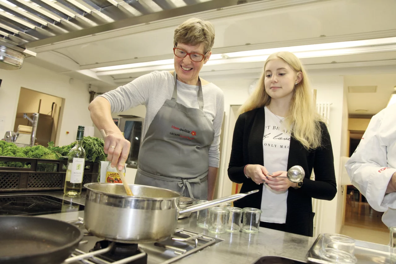 4. Creme Frâiche mit Vanillezucker und Eierlikör verrühren. Danach auf die erkaltete Grütze geben.