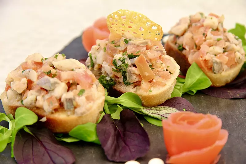 In den Niederlanden wird Matjes traditionell kalt mit Brot und Zwiebeln serviert. Ein Renner, auch bei den Lippischen Land-Wirten, ist die Zubereitung nach „Hausfrauenart": Dazu wird der Matjes in einer schmackhaften Soße mit saurer Gurke, Apfel und Zwiebel eingelegt. Im „Wanderhotel Externsteine" können Matjes-Fans den Kultfisch außerdem mit Preiselbeersahne und Brot genießen, das Gasthaus „Meinberger Schweiz" kredenzt den Klassiker: Matje am „Galgen" (gibt's nur bei den Lippischen Land-Wirten!) mit Zwiebeln, Butterböhnchen und Bratkartoffeln. „Bei uns kommt die Matjes-Bruschetta richtig gut an", berichtet Norbert Lange. Wer es etwas ausgefallener mag, kann im Landhaus Schieder auch den gebratenen Matjes kosten. Warm statt kalt und „einfach sensationell", schwärmt der Gastronom.