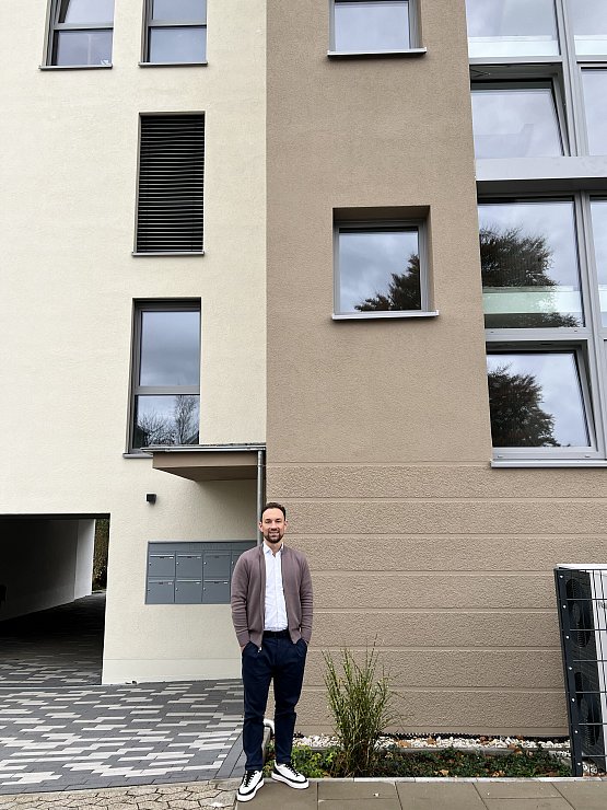 „Der Wärmeschutzbeauftragte muss das nur noch bestätigen", erklärt Vachid Gross (im Bild), Geschäftsführer der VEG Bau GmbH, die das Projekt als Entwickler und Bauträger realisiert hat. Zuvor befand sich auf dem Grundstück ein Haus aus dem 19. Jahrhundert. „Wir haben den Bebauungsplan geprüft und uns dann für einen nachhaltigen Neubau entschieden", erinnert sich Gross.