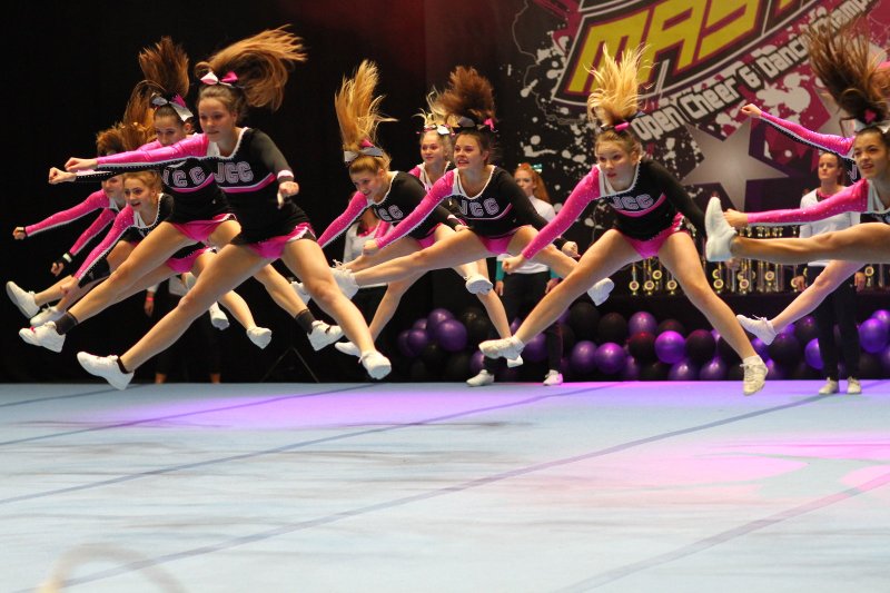 Eine haarige Angelegenheit: Die JCC aus Lemgo powern auf der großen Cheer-Bühne. - © Jörg Hagemann