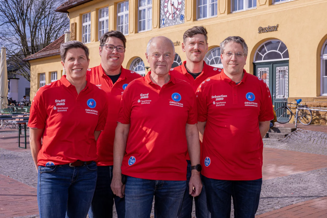 Um dann das neue Orgateam mit ihren Funktionen vorzustellen: TSVE-Vorstand Gerd Grundmann und Daniel Skakavac teilen sich die Leitung und werden von Sebastian Wappelhorst (Sponsoring/Marketing), Sebastian Endreß (Datenverarbeitung), Steffi Terstesse (Startkartenausgabe/Helfereinteilung), Tristan Ulrich (Startkartenausgabe/Koordination), Anton Schöneberg (Sicherheitskonzept) sowie Heiko Fleer (Leitung Hermannsdenkmal) unterstützt. „Es gibt wie immer viel zu tun, aber die Stimmung ist gut. Wir haben momentan alles im Griff, aber harren der Überraschungen, die noch kommen mögen“, sagt Daniel Skakavac, einer der Erfahrenen im Team, augenzwinkernd. Steffi Terstesse zeigt sich beeindruckt von der hohen Zahl der freiwilligen Helfer.