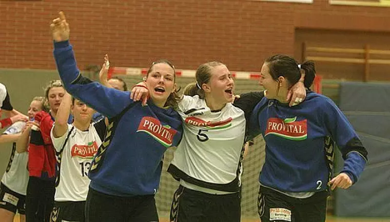 Da kommt Freude auf: Saskia Lang (Mitte) feiert mit Nancy Oldenburg (links) und Janine Urbannek. Dahinter: Kerstin Wohlbold, Natalie Hagel, Anne Krüger (v.r.). - © Foto: Lucas