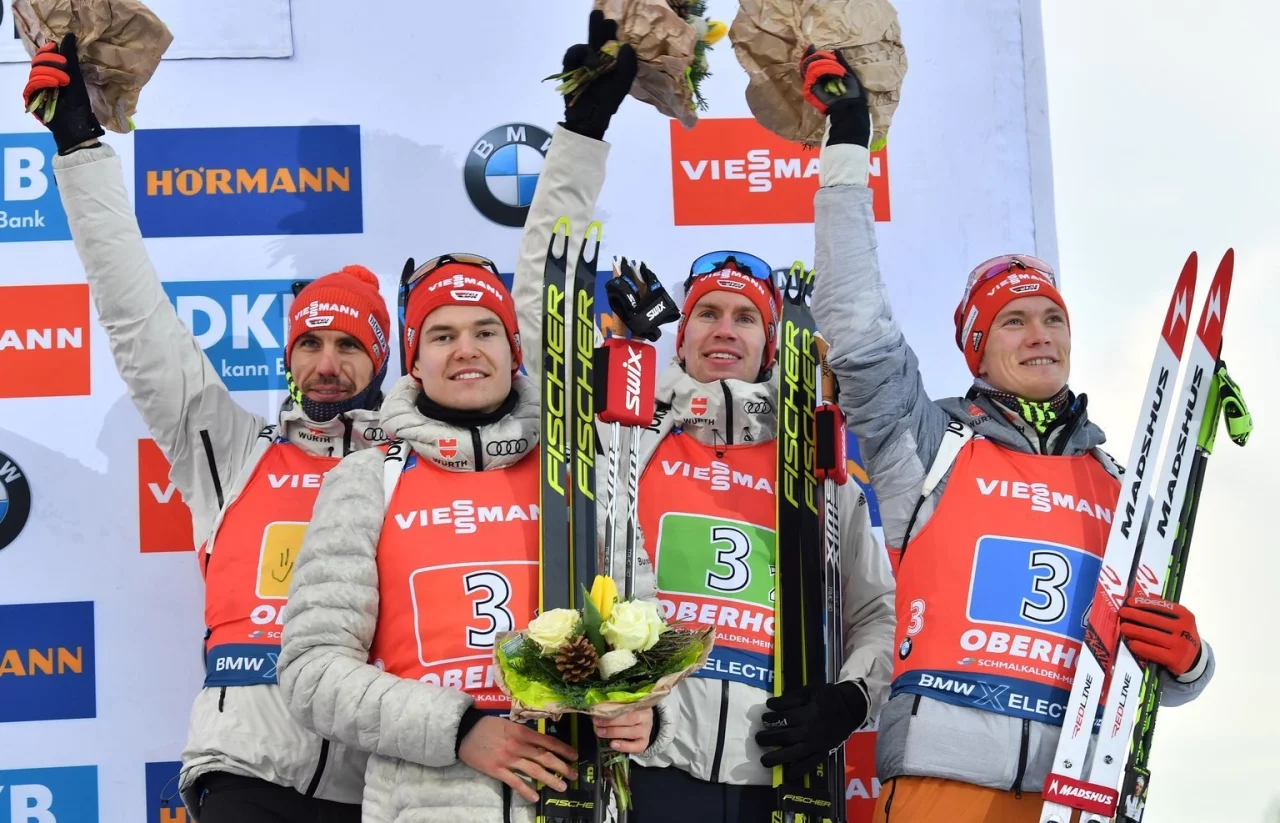 Aber mit Rang drei sorgten die in dieser Formation noch nie gelaufenen Philipp Horn, Johannes Kühn, Arnd Peiffer und Benedikt Doll beim Heim-Weltcup Oberhof dennoch für ein starkes Ergebnis und versetzten die 22.750 Fans noch mehr in Feierlaune. «Wir hatten uns vorher das Podium vorgenommen und deswegen können wir insgesamt zufrieden sein. Das Ergebnis stimmt», sagte Olympiasieger Peiffer am Samstag.