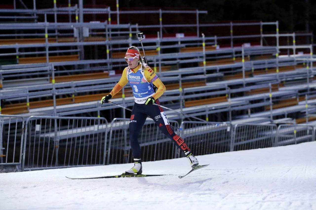Die frühere Langläuferin zeigte am Donnerstag bei ihrem zweiten Saisonerfolg, dem erst zweiten des deutschen Damen-Teams, bei teils böigem Wind zwei fehlerfreie Schießeinlagen und lieferte auch die Laufbestzeit ab. Und da war es am Ende dann doch nicht ganz so schlimm, dass statt des ohrenbetäubenden Lärms der Fans kaum etwas zu hören war - wegen der Ausbreitung der Coronavirus-Epidemie bleiben die Ränge leer. «Wahrscheinlich brauche ich doch die Ruhe um mich herum», flachste Herrmann nach dem ersten Rennen nach der WM, wo sie Silber in der Verfolgung und mit der Staffel gewonnen hatte. «Ich dachte mir schon, dass es kein Nachteil ist, am Schießstand ruhig und fokussiert seine Sachen machen zu können.» Dann schob sie nach: «Spaß beiseite, es wäre schon cool gewesen, die Stimmung hier zu erleben.»