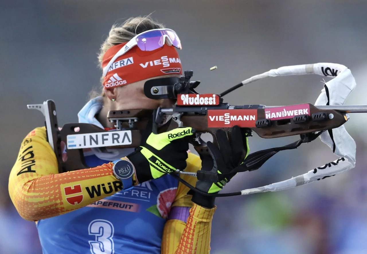 Im ekligen Schneeregen und bei schwierigen Windbedingungen hatten die Damen 14 Nachlader und eine Strafrunde von Preuß zu Buche stehen. Doch weil die frühere Langläuferin Herrmann in der Loipe einfach nicht zu stoppen ist, reichte es knapp für den Sprung auf das Podium. Dabei wiederholte Herrmann quasi das Geschehen der WM: Auf der Zielgeraden fing sie noch die Ukrainerin Olena Pidruschna um 1,5 Sekunden Vorsprung ab. «Es war eine zähe Partie und richtig stumpf. Auf der Zielgeraden da hat es mich fast überschlagen», berichtete Herrmann im ZDF, ehe sie mit ihren Teamkolleginnen bei der Siegerehrung auch ohne Fans strahlte.