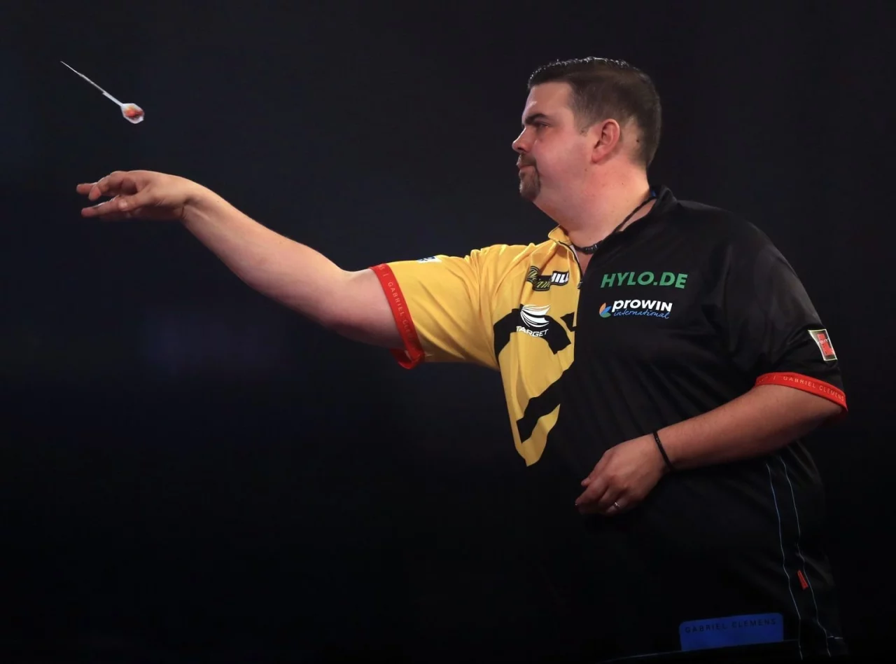 SAARLAND-GIGANT - Und das ist der Saarländer Gabriel Clemens - der sich als «The German Giant» einen Namen auf der Darts-Tour gemacht hat. Der 37-Jährige bezwang im deutschen Duell seinen Kumpel Nico Kurz und könnte nun als bislang erster Deutscher in der WM-Geschichte den Sprung ins Achtelfinale schaffen. «Für mich gibt es nix Schöneres. Ich bin total happy mit der Auslosung», sagte Clemens voller Selbstbewusstsein. Max Hopp hat er als besten Deutschen in der Weltrangliste bereits abgelöst.