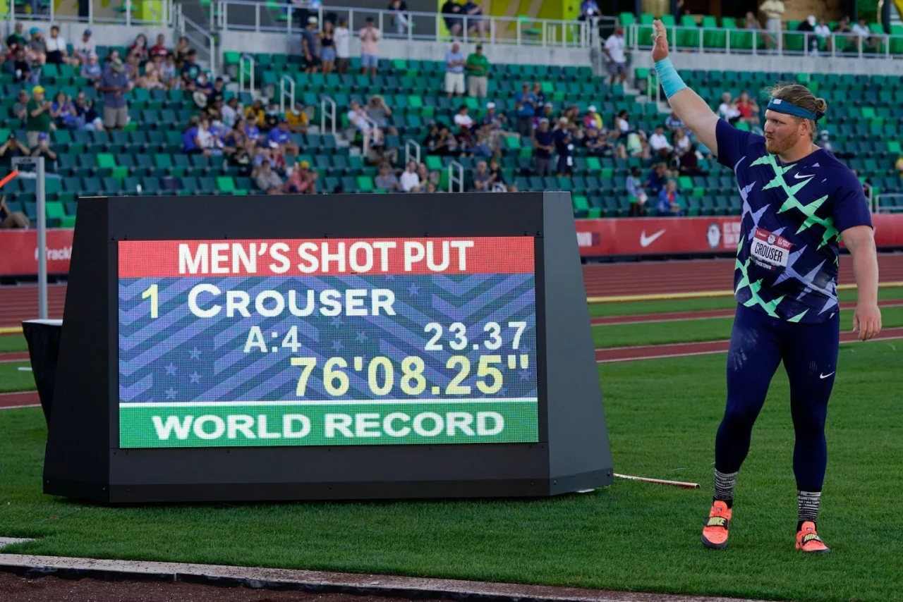 Ein Weltrekord des amerikanischen Kugelstoß-Olympiasiegers hatte sich längst angedeutet. Bei den US-Meisterschaften der Leichtathleten in Eugene war es nun so weit: Sein 7,26 Kilogramm schweres Gerät landete knapp vor der Betonumrandung und bei 23,37 Metern - damit übertrumpfte Crouser die 31 Jahre alte Bestmarke seines Landsmanns Randy Barnes (23,12).