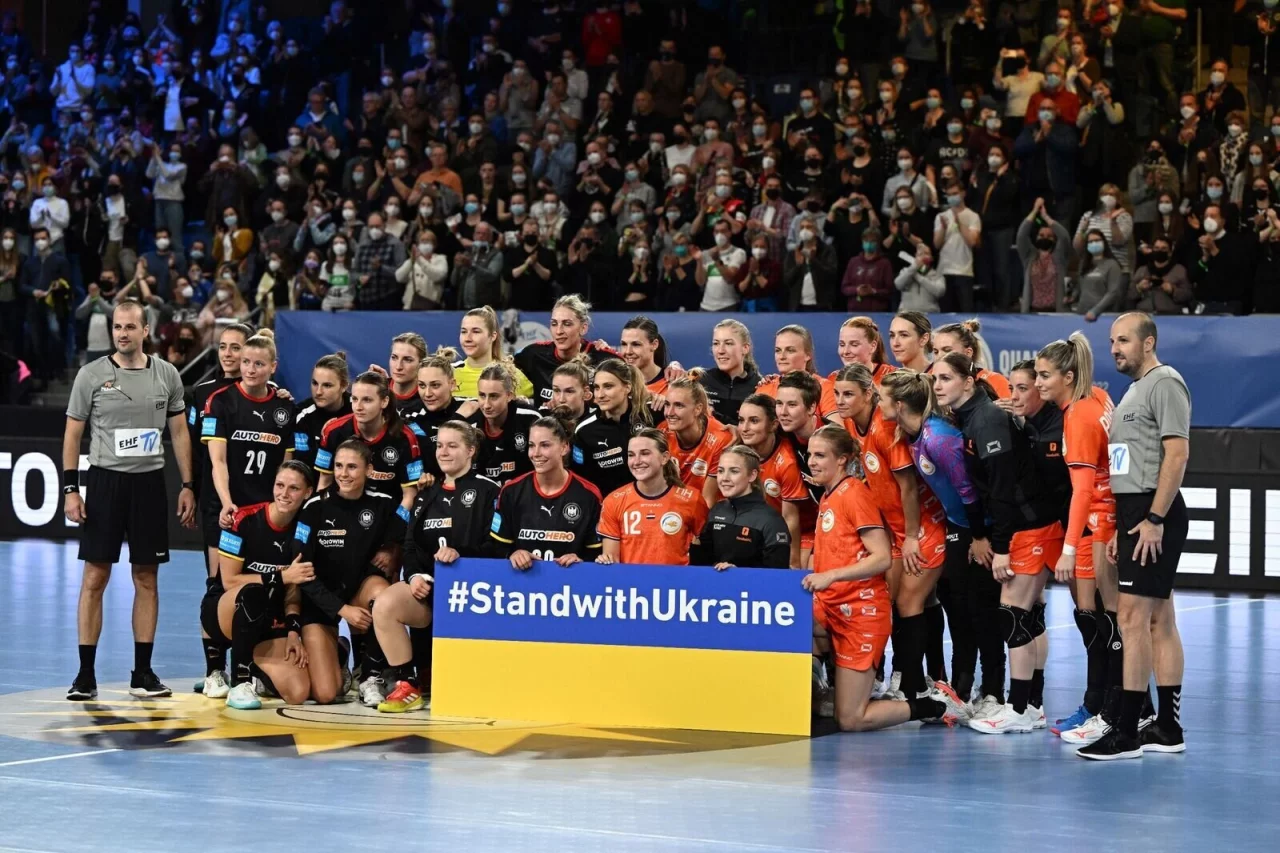 Krefeld - Nach der 25:31-Pleite der deutschen Handball-Frauen im Prestigeduell gegen die Niederlande setzten beide Rivalen ein starkes Zeichen gegen den russischen Invasionskrieg in der Ukraine.