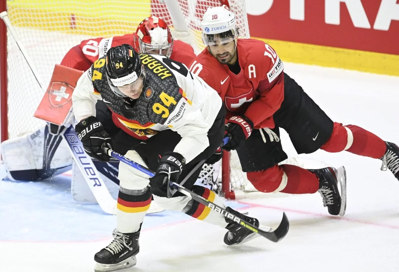 In einem hochklassigen Duell der Erzrivalen schossen Kai Wissmann (12. Minute) von den Eisbären und Stefan Loibl (16.) und Matthias Plachta (48.) von den Adler Mannheim die deutschen Tore in der regulären Spielzeit. Für die favorisierten Schweizer mit sieben NHL-Cracks waren Andres Ambühl (2.) bei seiner 17. WM-Teilnahme, Pius Suter (22.) und Denis Malgin (39.) in den 60 Minuten erfolgreich gewesen. Die Schweiz musste erstmals bei dieser WM überhaupt in die Verlängerung, in der keine Tore fielen. Im Penaltyschießen waren Nico Hischier und Damien Riat erfolgreich, für Deutschland traf niemand.