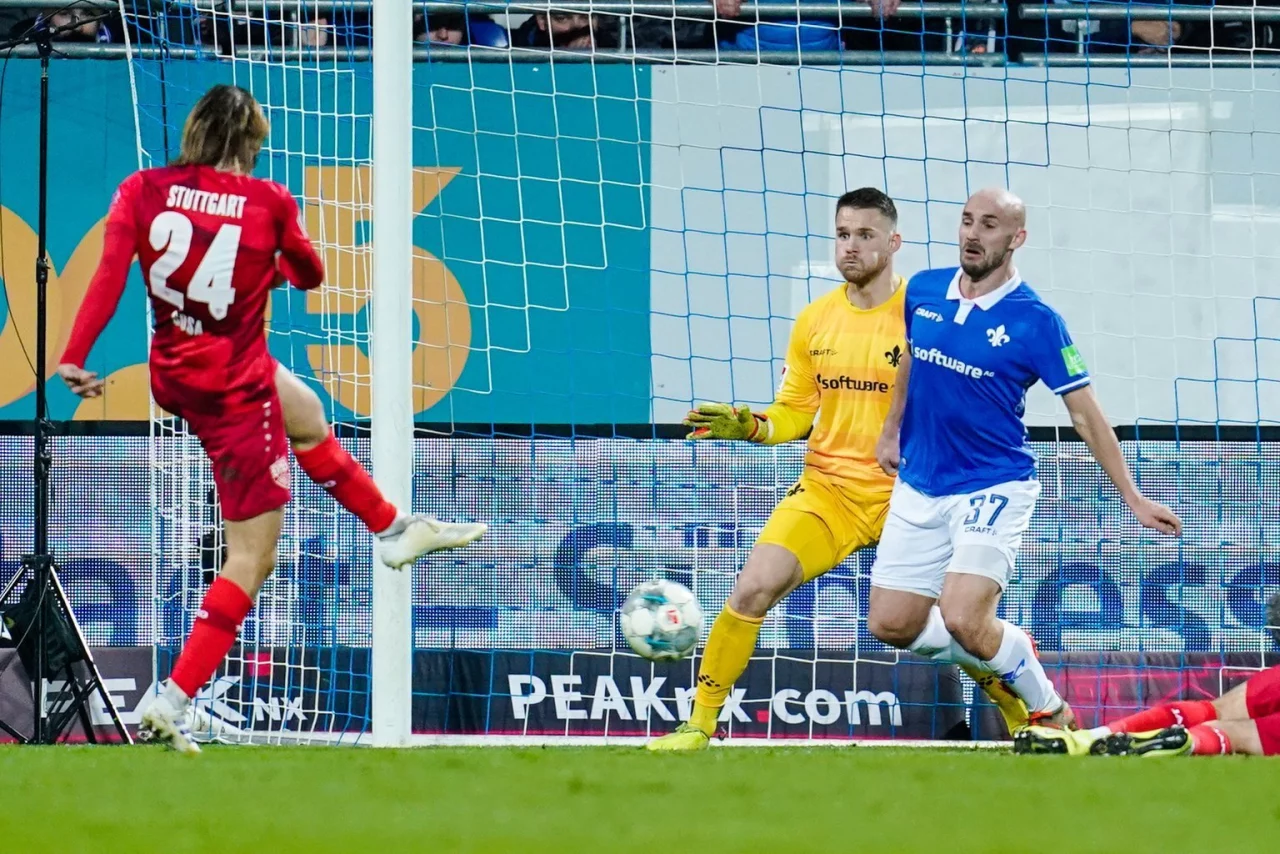 In der 65. Minute wurde dann ein Treffer des Ex-Nationalspielers wegen Abseits nicht anerkannt. Stuttgart drückte, und der agile Santiago Ascacibar traf den Pfosten (77.). Darmstadt wurde jedoch immer wieder mit Kontern gefährlich.