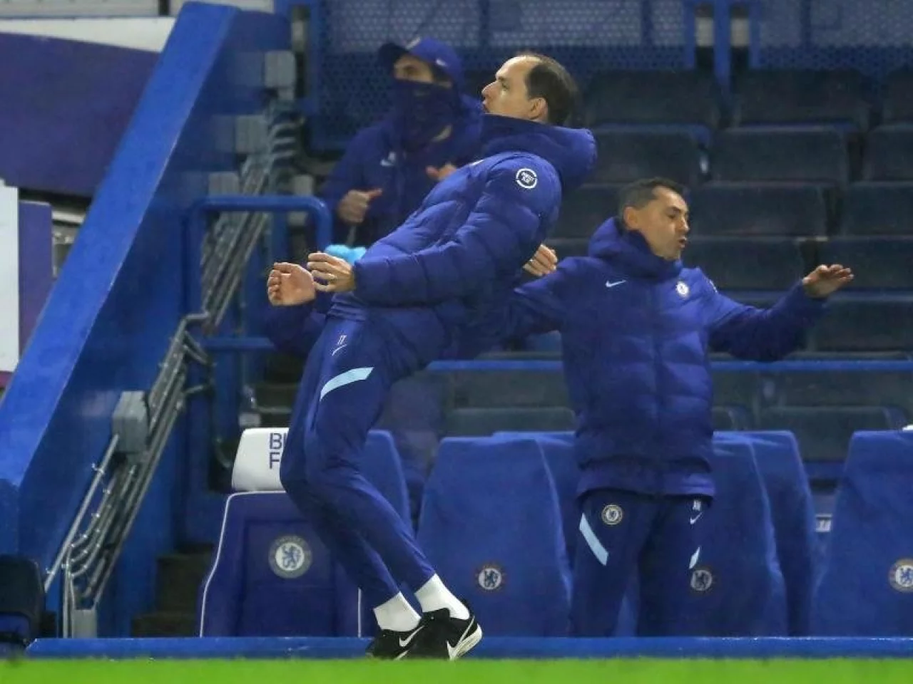 Er rannte in seinem neuen dunkelblauen Trainingsanzug nebst passender Wollmütze an der Seitenlinie auf und ab und bog bei einer der vielen vergebenen Torchancen seinen Rücken durch, als wolle er selber zum Kopfball hochsteigen. Dem deutschen Nationalspieler Antonio Rüdiger rief er auf Deutsch zu, dass dieser den Ball «zu früh» gespielt habe.