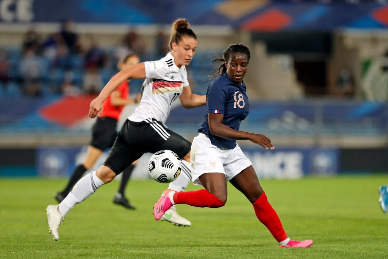 Das Gegentor, das praktisch aus dem Nichts fiel, sorgte für einen Riss im deutschen Spiel. Die letzte Viertelstunde der ersten Halbzeit gehörte den Gastgeberinnen, die durch Grace Geyoro nach 37 Minuten die große Chance zum 2:0 vergaben. Allein auf Frohms zulaufend, scheiterte sie an der stark reagierenden deutschen Torfrau, die damit ihren Fehler vom Gegentor ausbügelte.