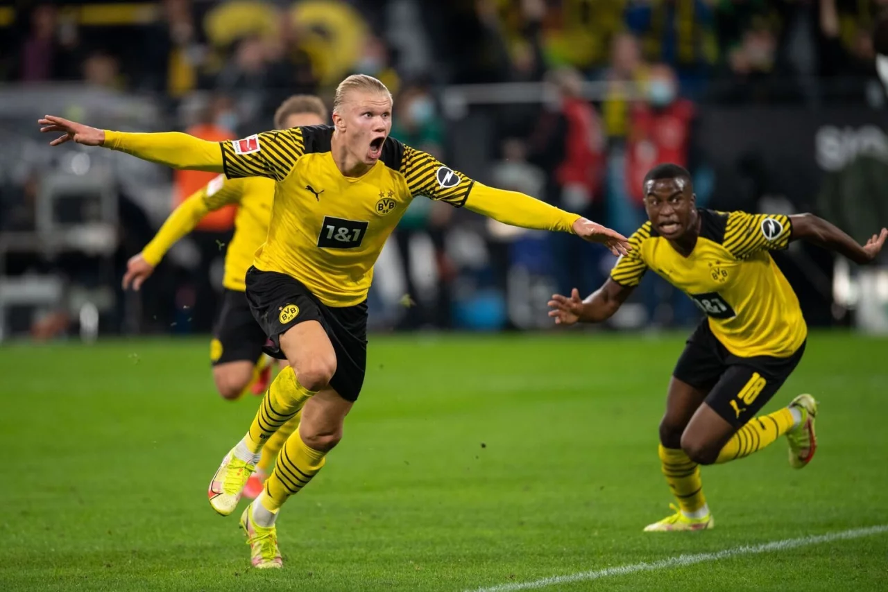 Dortmund - Torgarant Erling Haaland war auch noch Minuten nach dem Spektakel wie elektrisiert und heizte die Dortmunder Südkurve ein. Zuvor hatte der norwegische Torjäger zusammen mit zwei erst 18 Jahre alten Fußball-Juwelen Borussia Dortmund vor einem weiteren Rückschlag bewahrt.