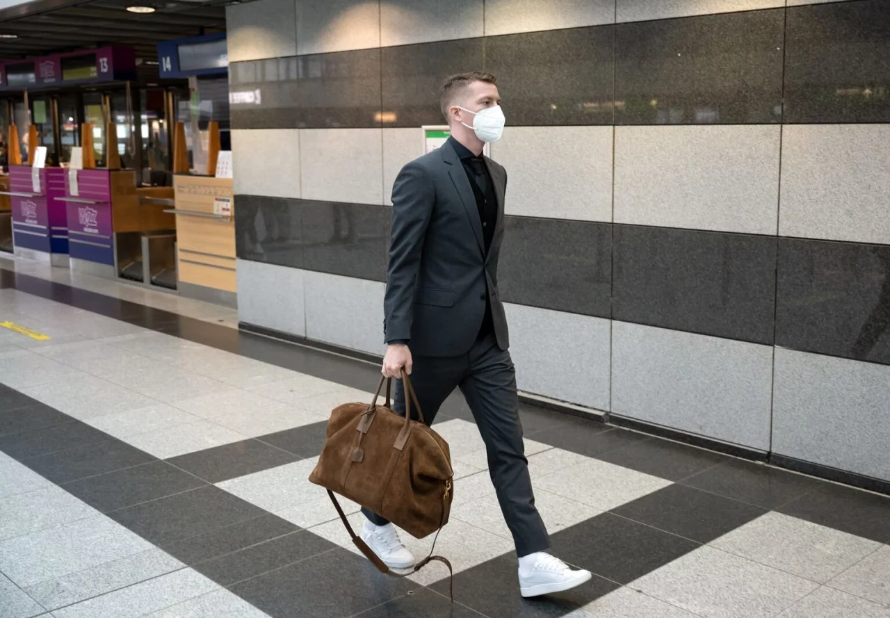 Dortmund - Festen Schrittes betrat Marco Reus im schicken grauen Anzug mit schwarzer Krawatte und grauer Ledertasche den Sonderflieger EW1909.