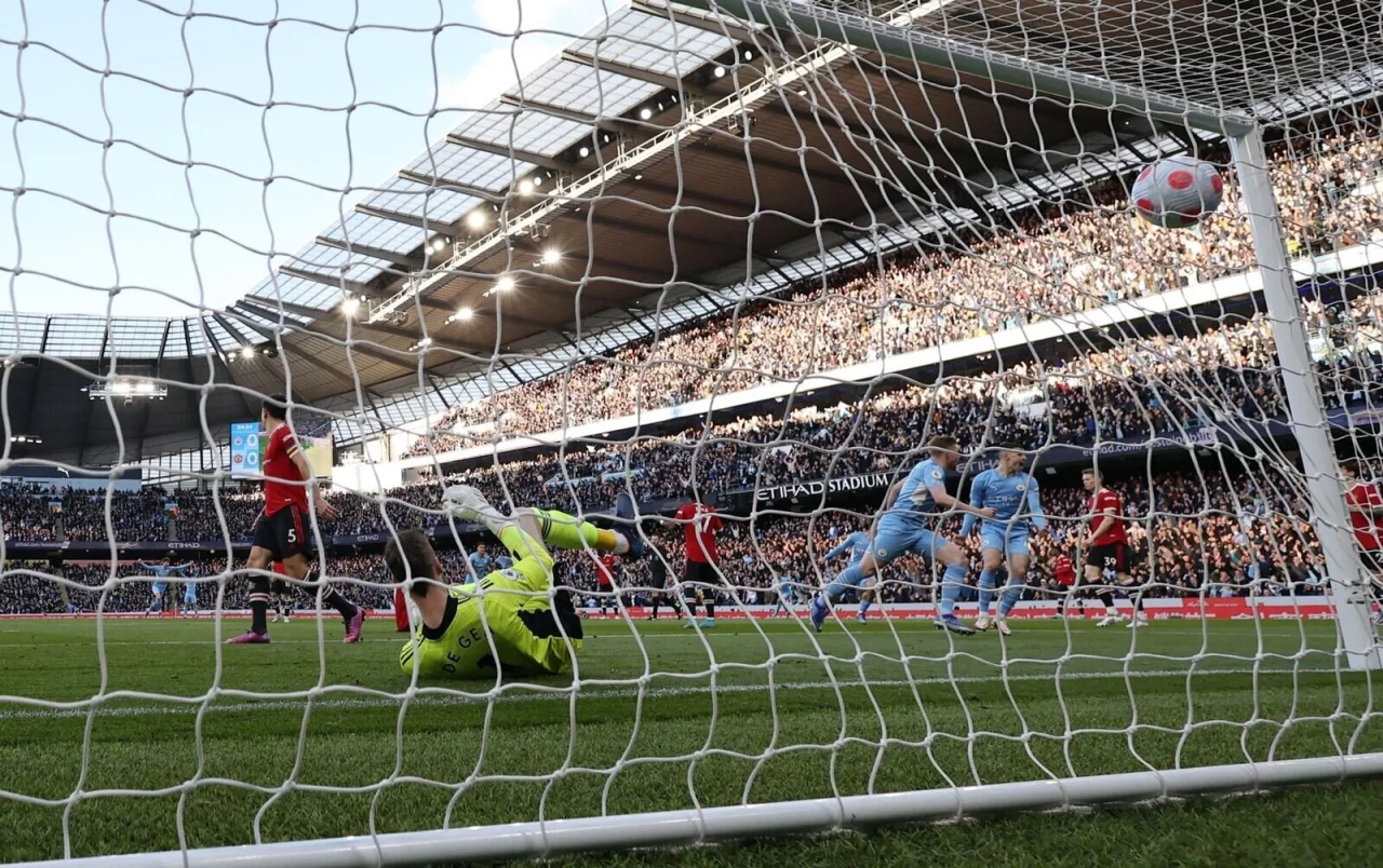 Manchester - Trainer Ralf Rangnick hat mit Manchester United in der Premier League einen weiteren Dämpfer hinnehmen müssen. Ohne seinen Superstar Cristiano Ronaldo verlor der englische Fußballrekordmeister das prestigeträchtige Stadtderby bei Tabellenführer Manchester City mit 1:4 (1:2).