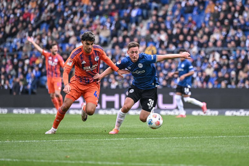 Die zwangsweise umgebaute Arminen-Formation versuchte unter Schalker Dauerdruck mühsam, sich zu finden. Maximilian Großer sollte Stefano Russo als Sechser ersetzen und Sam Schreck stand als Ersatz für Marvin Mehlem im Mittelfeld. Die Innenverteidigung besetzten Joel Felix und Leon Schneider.