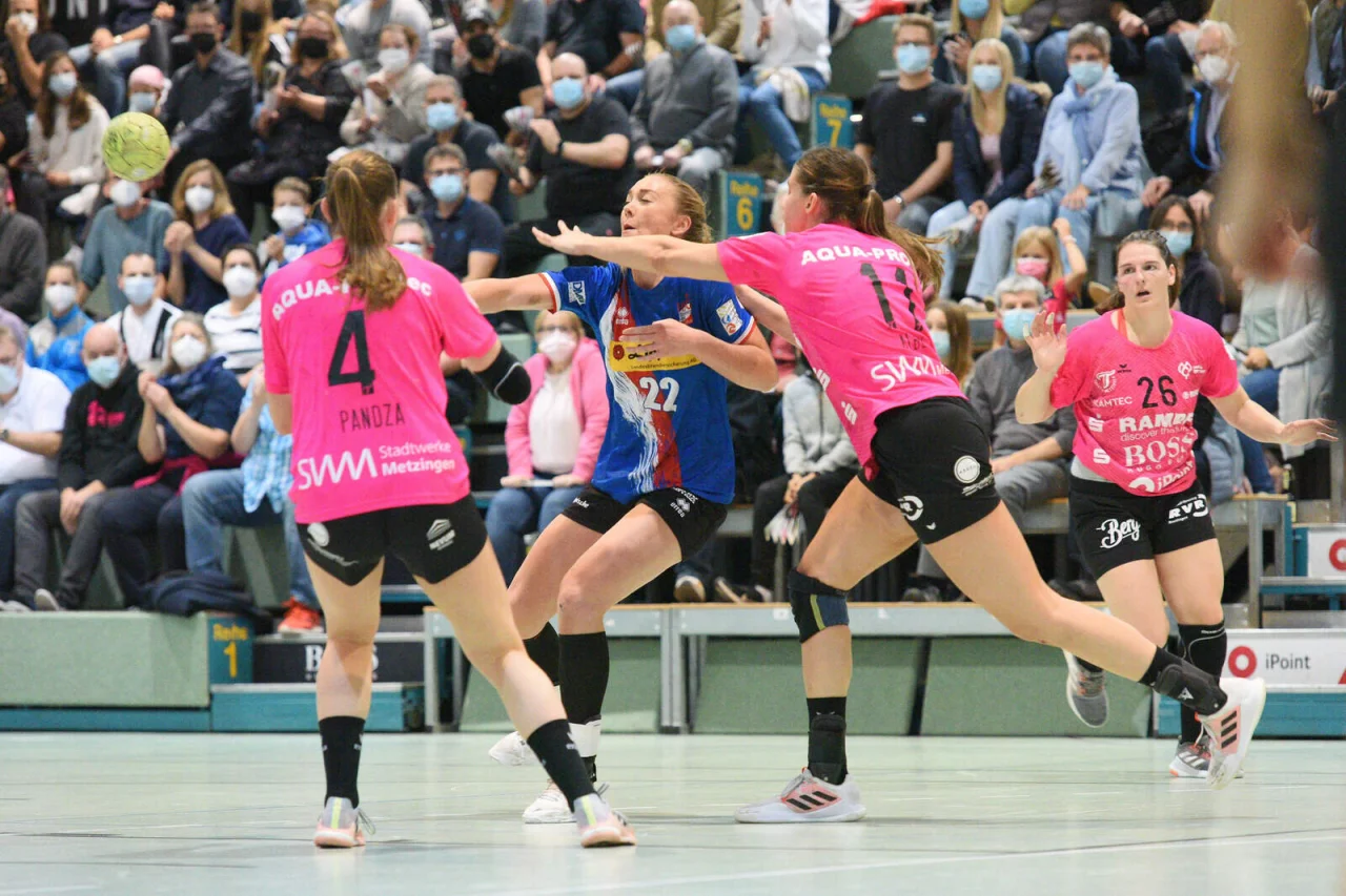 Die Blombergerinnen erwischten einen guten Start und legten nach sieben Minuten ein 4:1 vor. Nach dem 7:3 durch Linnea Pettersson (11.) blieb es beim Vier-Tore-Vorsprung (10:6, 12:8, 13:9), ehe drei Minuten vor der Pause Laetita Quist (Zwei-Minuten-Strafe) und kurze Zeit später Kamila Kordovská (rote Karte nach Foulspiel) vom Feld mussten. Metzingen nutzte die Gunst der Stunde und verkürzte zur Pause auf 12:15.