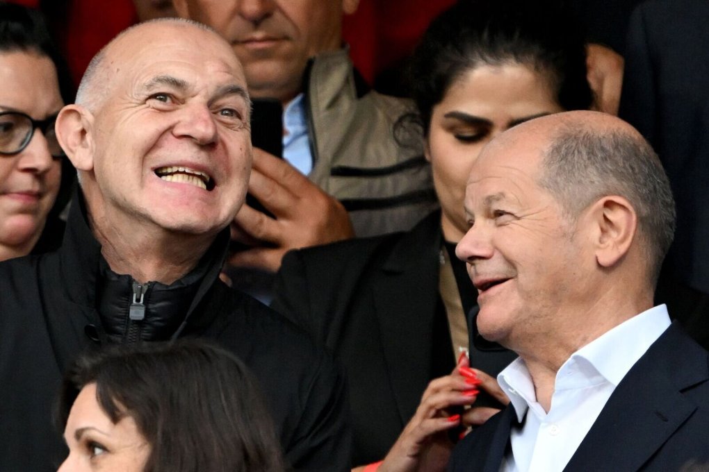 Bundeskanzler Olaf Scholz hat die deutsche Fußball-Nationalmannschaft nach dem torlosen Remis im vorletzten EM-Test gegen die Ukraine in der Kabine besucht. Der SPD-Politiker hatte das 0:0 in Nürnberg auf der Tribüne verfolgt, im Anschluss machte er sich in Begleitung von DFB-Sportdirektor Rudi Völler, DFB-Präsident Bernd Neuendorf und DFB-Geschäftsführer Andreas Rettig auf zur Mannschaft.