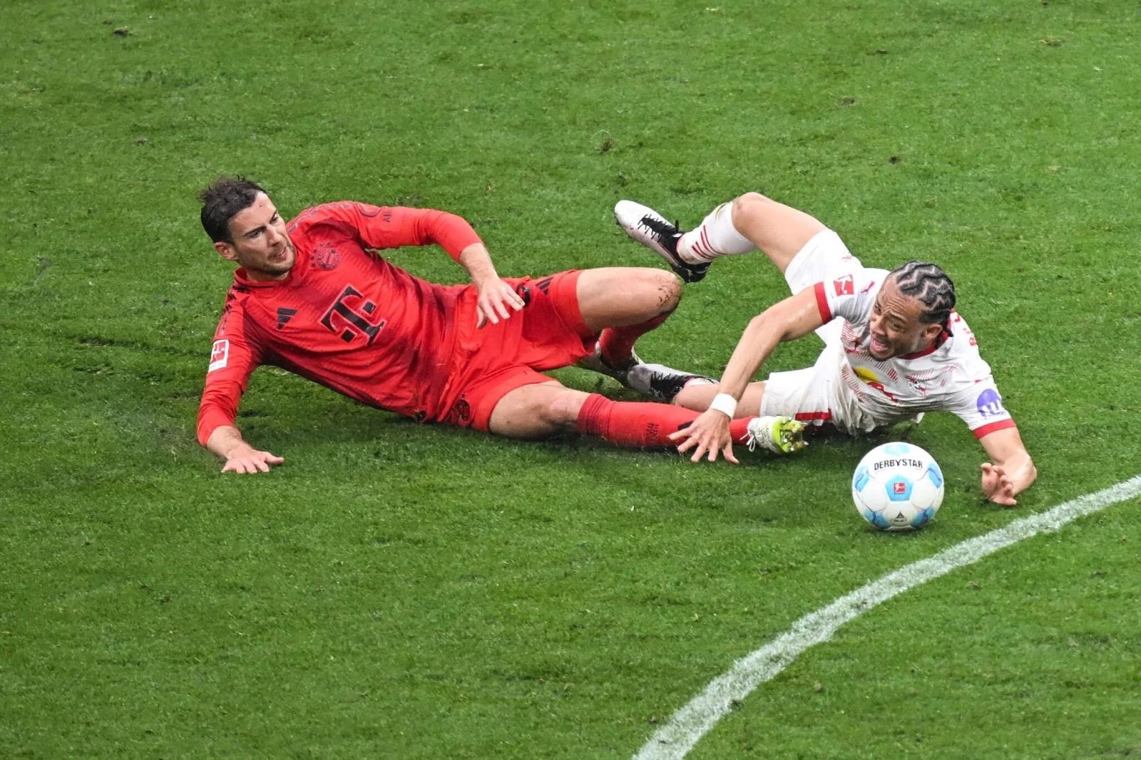 Vor 47.800 Fans in der ausverkauften Leipziger Arena versetzte Benjamin Sesko (11. Minute) den Bayern nach einem Patzer von Torwart Jonas Urbig den ersten Nackenschlag. Lukas Klostermann (39.) erhöhte noch vor der Pause für die Gastgeber. Binnen nur einer Minute schlugen die Bayern durch Eric Dier (62.), Michael Olise (63.) zurück. Leroy Sané (83.) traf später zum umjubelten 3:2 für die Gäste. Aus dem Bayern-Block flogen schon Raketen - dann traf Yussuf Poulsen (90.+4) tief in der Nachspielzeit.
