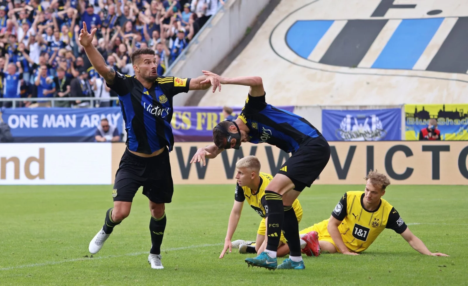 Der 1. FC Saarbrücken hat sich am letzten Spieltag der 3. Fußball-Liga noch Rang drei und damit die Chance auf den Aufstieg in die 2. Bundesliga gesichert. Die Saarländer gewannen ihr Heimspiel gegen Borussia Dortmund II mit 2:1 (0:1) und profitierten von der Niederlage des FC Energie Cottbus beim 1:4 (1:1) gegen den FC Ingolstadt. Gleichzeitig schickte Saarbrücken die Dortmunder Reserve in die Regionalliga. Als Trostpreis bleibt für Cottbus Rang vier und damit die direkte Qualifikation für den DFB-Pokal in der nächsten Saison.