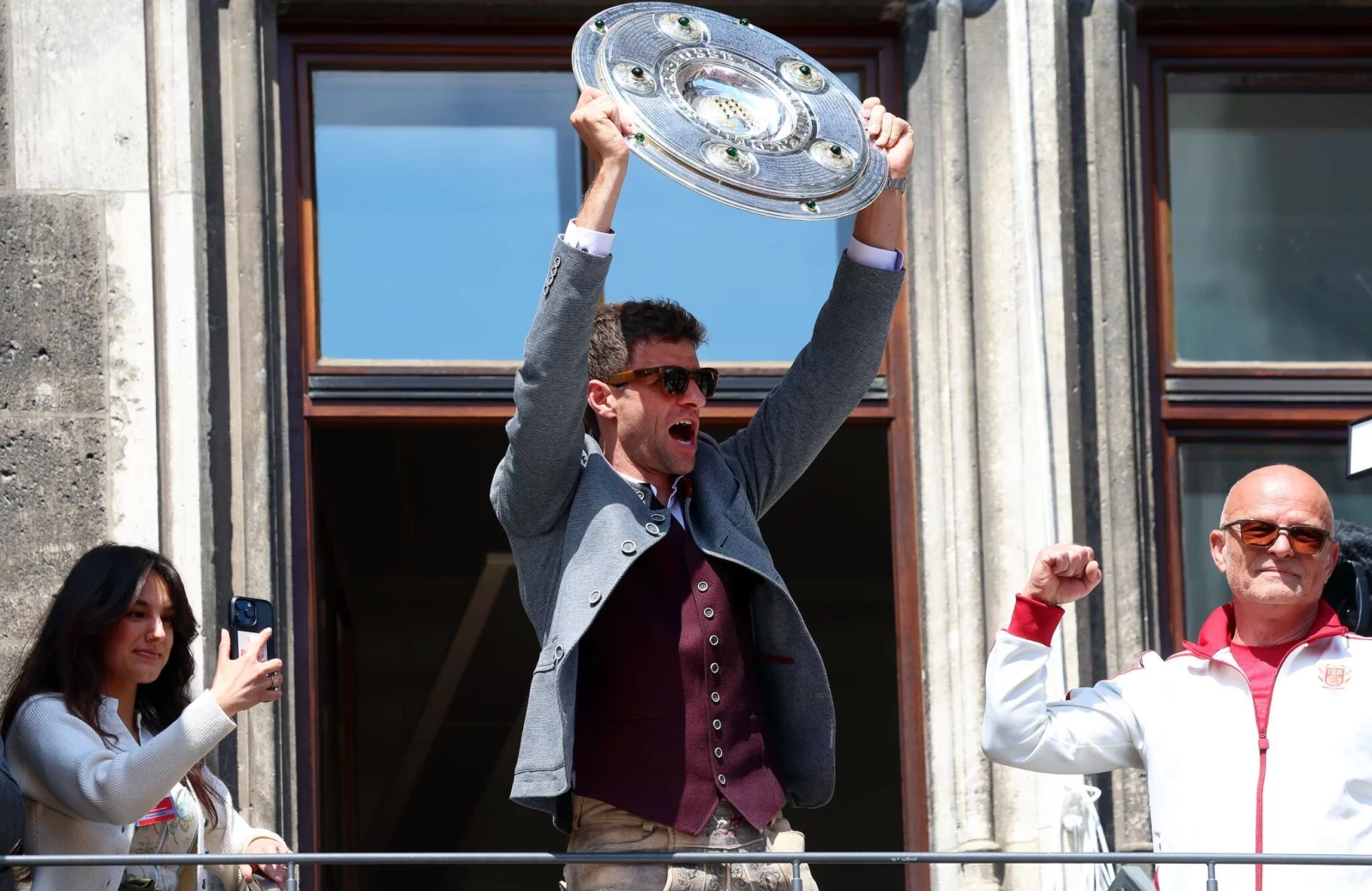 Tausende Bayern-Fans haben insbesondere Vereins-Ikone Thomas Müller auf dem Münchner Marienplatz nach dem Gewinn des 34. Meistertitels gefeiert. «Ich wollte mich nochmal bei euch bedanken für all die wunderschönen Jahre», sagte der 35-Jährige bei der Feier seines persönlich 13. und letzten Meistertitels als Spieler des deutschen Fußball-Rekordmeisters.