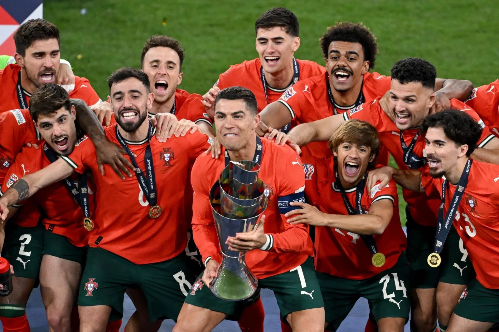 Cristiano Ronaldo kostete den Triumph voll aus. «Ich habe viele Titel, aber es gibt nichts Besseres, als mit der Nationalmannschaft zu gewinnen», sagte der Fußball-Weltstar nach Portugals dramatischem Sieg im Finale der Nations League. Im Elfmeterschießen hatte sich das Team von Trainer Roberto Martínez am Sonntagabend in München gegen Spanien durchgesetzt. Für Ronaldo war es der dritte Titel mit dem Nationalteam nach dem Gewinn der Europameisterschaft 2016 und der Nations League 2019.
