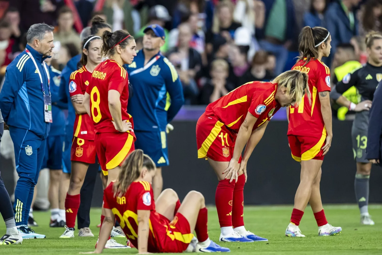 Schwacher Trost für Spaniens Superstar Aitana Bonmatí: Die 27 Jahre alte Weltfußballerin vom FC Barcelona wurde nach dem verlorenen EM-Finale gegen England als beste Spielerin des Turniers ausgezeichnet. Erfolgreichste Torschützin in der Schweiz wurde Bonmatís spanische Teamkollegin Ester González mit vier Treffern. Die Auszeichnung der UEFA als beste junge Spielerin erhielt Englands 19 Jahre alte Michelle Agyemang.