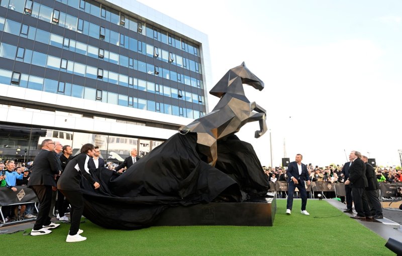 Einige tausende Fans und die früheren Spielergrößen Berti Vogts, Günter Netzer und Lothar Matthäus schauten zu, wie ein Team um Winnie Schäfer das unter einem schwarzen Tuch versteckte Fohlen enthüllte. «Die Statue soll ein Denkmal für die Ewigkeit sein und ist ein Geschenk an unsere treuen Fans, die unseren Club in guten und in weniger guten Zeiten bedingungslos unterstützen», sagt Marketingdirektor Sebastian Otten im aktuellen Mitgliedermagazin.