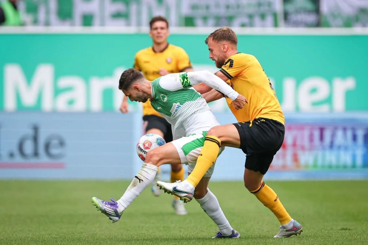 In der teils rasanten Begegnung war Aufsteiger Dynamo nach einer verpatzten Anfangsphase weitgehend spielbestimmend mit deutlich mehr Torschüssen. Ganz viele zwingende Chancen aber waren beim Team von Coach Thomas Stamm vor 15.631 Zuschauern nicht dabei.