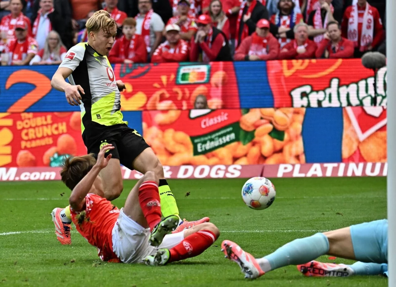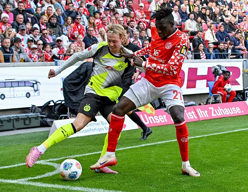Der Schwede Daniel Svensson brachte effiziente Dortmunder vor 33.305 Zuschauern in der 27. Minute in Führung. Kurz vor der Halbzeit erhöhte Nationalspieler Karim Adeyemi (40.) gegen glücklose Hausherren auf 2:0. Ein Tag zum Vergessen erlebte der Mainzer Torwart Robin Zentner, der in der 67. Minute nach einem klaren Foul außerhalb des Strafraums gegen Adeyemi zurecht die Rote Karte sah.