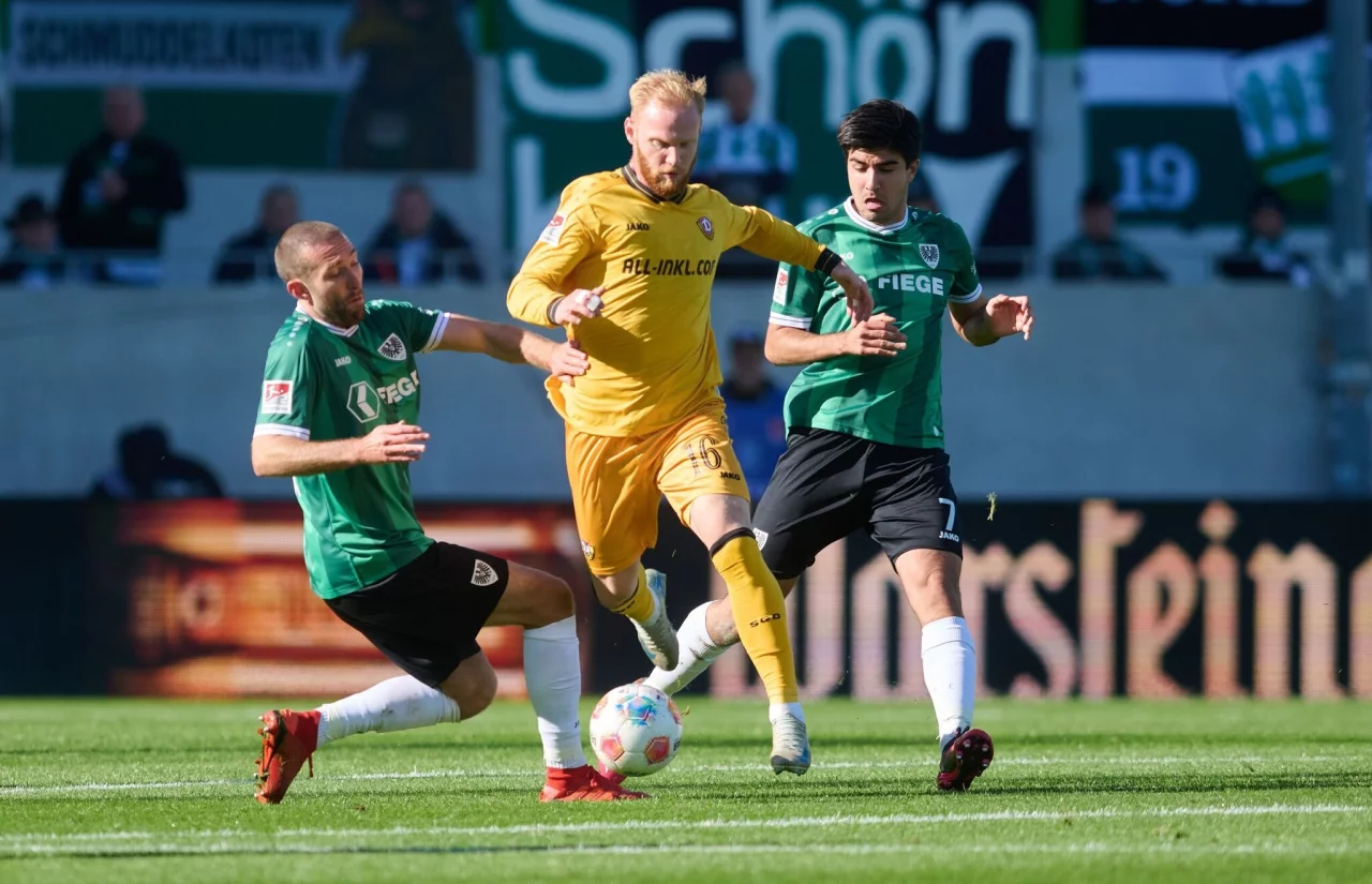 In einer temporeichen Partie hatten zunächst die Gastgeber die besseren Gelegenheiten. Dresdens Lukas Boeder rettet auf der Linie bei einem Abschluss der Münsteraner (13.). Kurz darauf verhinderte die Latte bei einem abgefälschten Schuss von Lars Lokotsch die Führung für Münster (15.).