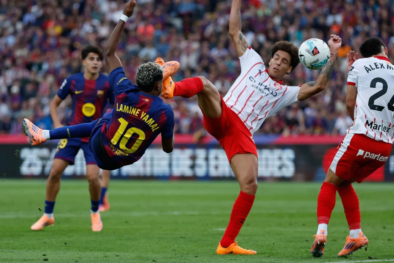 Der FC Barcelona hat den nächsten Rückschlag in der spanischen Fußball-Meisterschaft dank eines späten Treffers gerade noch vermieden. Die Mannschaft von Ex-Bundestrainer Hansi Flick gewann 2:1 (1:1) gegen den FC Girona. Matchwinner war Ronald Araujo mit seinem Siegtor in der dritten Minute der Nachspielzeit. Zuvor hatte der frühere Dortmunder Axel Witsel (20.) für Girona die Führung von Pedri (13.) ausgeglichen.